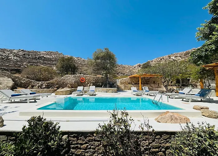 Οι επισκέπτες μπορούν να μαγειρέψουν τα γεύματα τους στην πλήρως εξοπλισμένη κουζίνα ή να γευματίσουν στην τραπεζαρία. Οι επισκέπτες επίσης μπορούν να χρησιμοποιήσουν ηλεκτρικό βραστήρα, μαγειρικά σκεύη και γυάλινα σκεύη για να μαγειρέψουν το γεύμα τους. Το πλησιέστερο αεροδρόμιο είναι Κρατικός Μυκόνου, το οποίο βρίσκεται 5 χιλιόμετρα μακριά από το κατάλυμα. Αυτή η βίλα διαθέτει βεράντα που έχει θέα στην πισίνα.